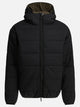 Piumino corto reversibile in nylon Daiwa Pier 39, costruito con tessuto sintetico e struttura imbottita. Il modello presenta una silhouette corta, cappuccio integrato e chiusura frontale a zip. Il materiale esterno in nylon è accoppiato con imbottitura in poliestere, favorendo isolamento e performance. La reversibilità permette una doppia opzione d'uso, mantenendo linee essenziali e cuciture ridotte per una finitura pulita della superficie esterna.