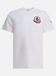 T-shirt in cotone Moncler con struttura morbida e silhouette dritta. Realizzata in tessuto jersey di cotone a trama compatta, presenta maniche corte e un girocollo rifinito con bordatura lineare. Stampa del logo Moncler visibile sul petto, mentre una patch con logo è applicata sulla manica sinistra. L'assemblaggio delle cuciture è eseguito con finitura piatta per ridurre spessori e mantenere stabilità strutturale.