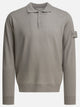 Maglione polo in lana Stone Island realizzato in pura lana leggera certificata RWS, lavorato a maglia rasata finezza 14. Struttura a manica lunga con costruzione lineare, collo polo a costine e chiusura centrale a tre bottoni. Bordi su polsi e fascia inferiore rifiniti a costine, silhouette regular. Badge Stone Island Ghost tono su tono applicato sulla manica sinistra.