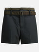 Sacai X Suiting. Shorts sartoriali con cintura integrata, realizzati con un tessuto costituito da 70% poliestere e 30% lana. La struttura presenta una silhouette regolare, dettagliata da linee nette e cuciture evidenti. I materiali includono inserti in nylon e cupro, che aggiungono contrasto materico e definizione al capo. La costruzione segue criteri tipici della sartoria contemporanea, con attenzione agli elementi funzionali.