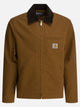 Carhartt WIP "Detroit" overshirt jacket, unlined model made of heavy Dearborn canvas, with stable structure and velvet collar. Front closure is by full zipper while cuffs and hem have adjustable snaps. There is a zippered pocket on the chest and a square fabric-applied label as a distinctive detail.