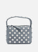 Khaite "Elena" handbag, constructed with a sculptural approach on a box base in a compact size. The rigid structure integrates a shoulder strap for additional portability. The surface features regularly placed studded elements. The top closure is by a linear zipper that follows the top edge of the silhouette. The interior includes an internal pouch pocket.